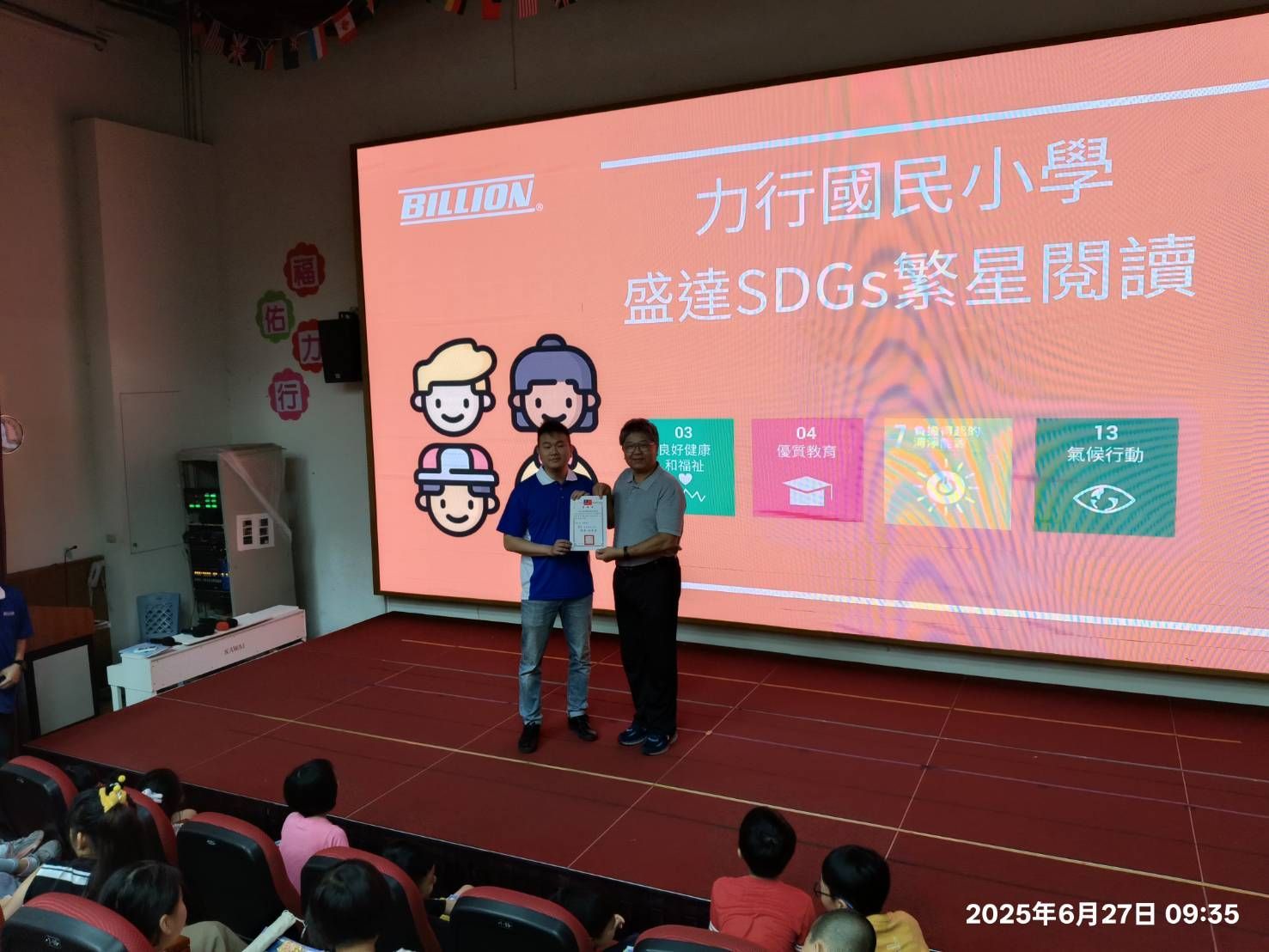 The third campus event of Billion Group's 2025 SDGs Star Seed Projects brought the ESG volunteer team back to Wenshan District, this time visiting Lixing Elementary School, known for its strong educational values. Upholding the core school motto of "Act with perseverance, pursue truth, kindness, and beauty," the school is committed to cultivating students with both character and action, and has long been dedicated to helping students practice these core values in daily life.
